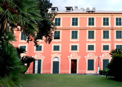La struttura della villa si sviluppa su più piani, con una serie di ampie stanze e giardini ben curati, dove il paesaggio ligure si fonde con l'architettura della villa creando un'atmosfera di grande suggestione.