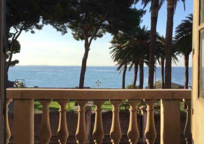 La posizione della villa, che si affaccia sul mare, al quale è possibile accedere passando per la spiaggia privata, consente di godere di una vista panoramica mozzafiato, con il blu del mare che si mescola al verde delle colline circostanti.