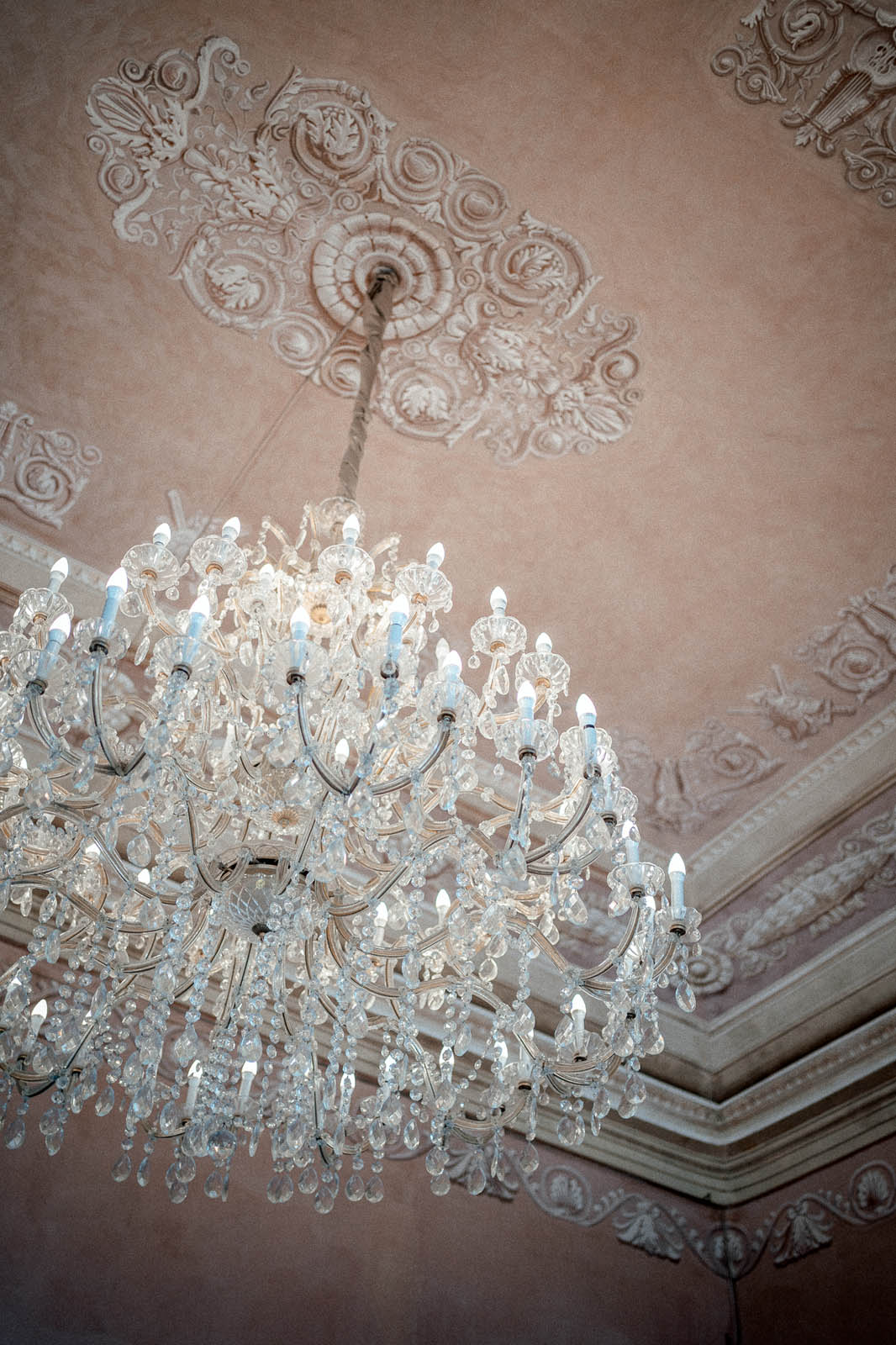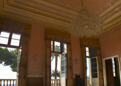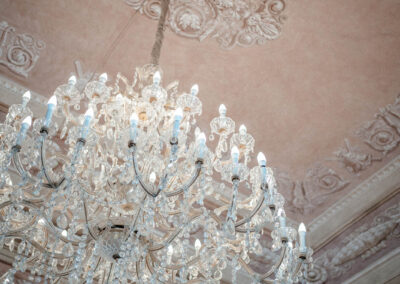 L'interno della villa è ricco di decorazioni eleganti, stucchi, affreschi. Ogni stanza è un esempio di raffinatezza che conferiscono alla villa un carattere aristocratico e signorile.