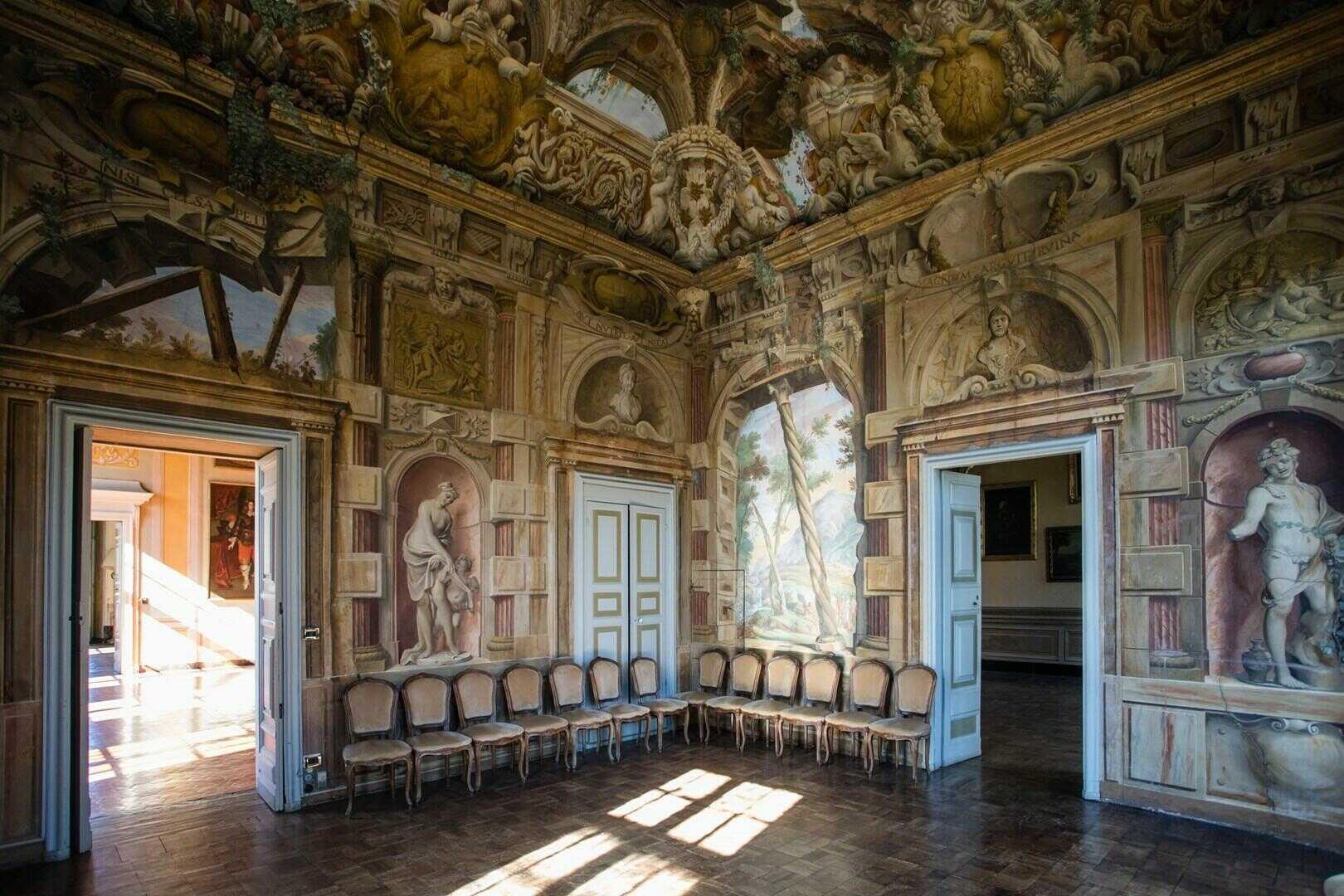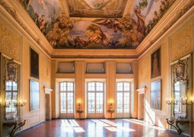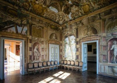 Ogni stanza è un angolo di storia: troviamo 10 eleganti sale su due piani, riccamente dipinte da diversi artisti prestigiosi dell’epoca, come Domenico Piola.